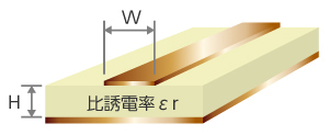 回路パターンのインピーダンスと使用する電子部品の入出力インピーダンスを整合させる基板です。信号線の幅、絶縁層の厚み、基材の比誘電率で決まります。